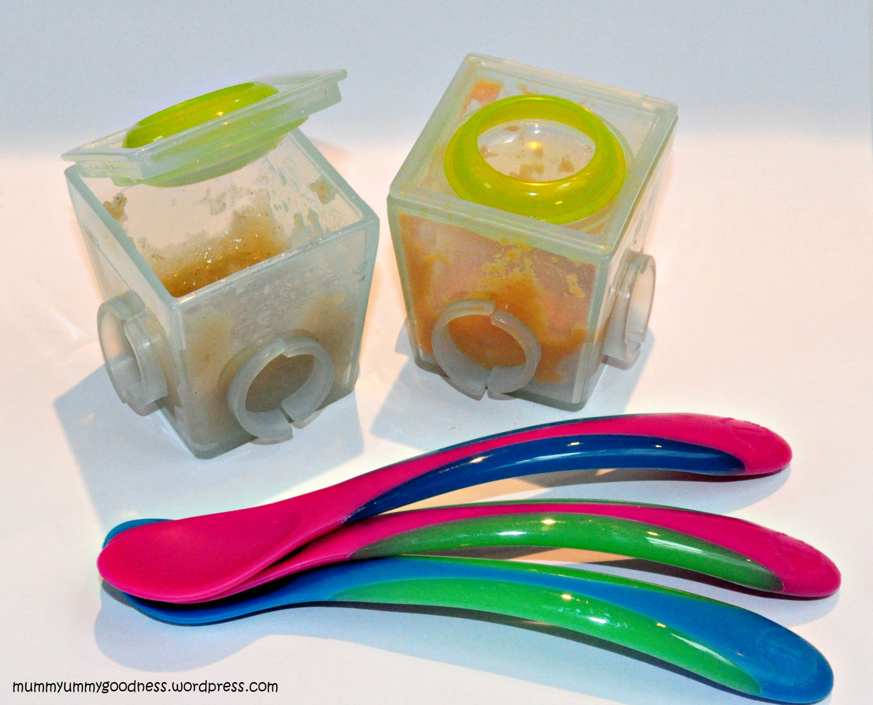I also learnt that my little daughter seems to have inherited her Papa’s sweet tooth (not that she actually has any teeth yet)!  Once I started adding a little milk (you can use breast milk or formula) to the purees, she gobbled them back.  If you’ve ever tasted breast milk (I have thanks to airport security), you’ll know just how sweet it is – I was really shocked! Anyway, it seems to do the trick so I’m sticking with it for the moment…..