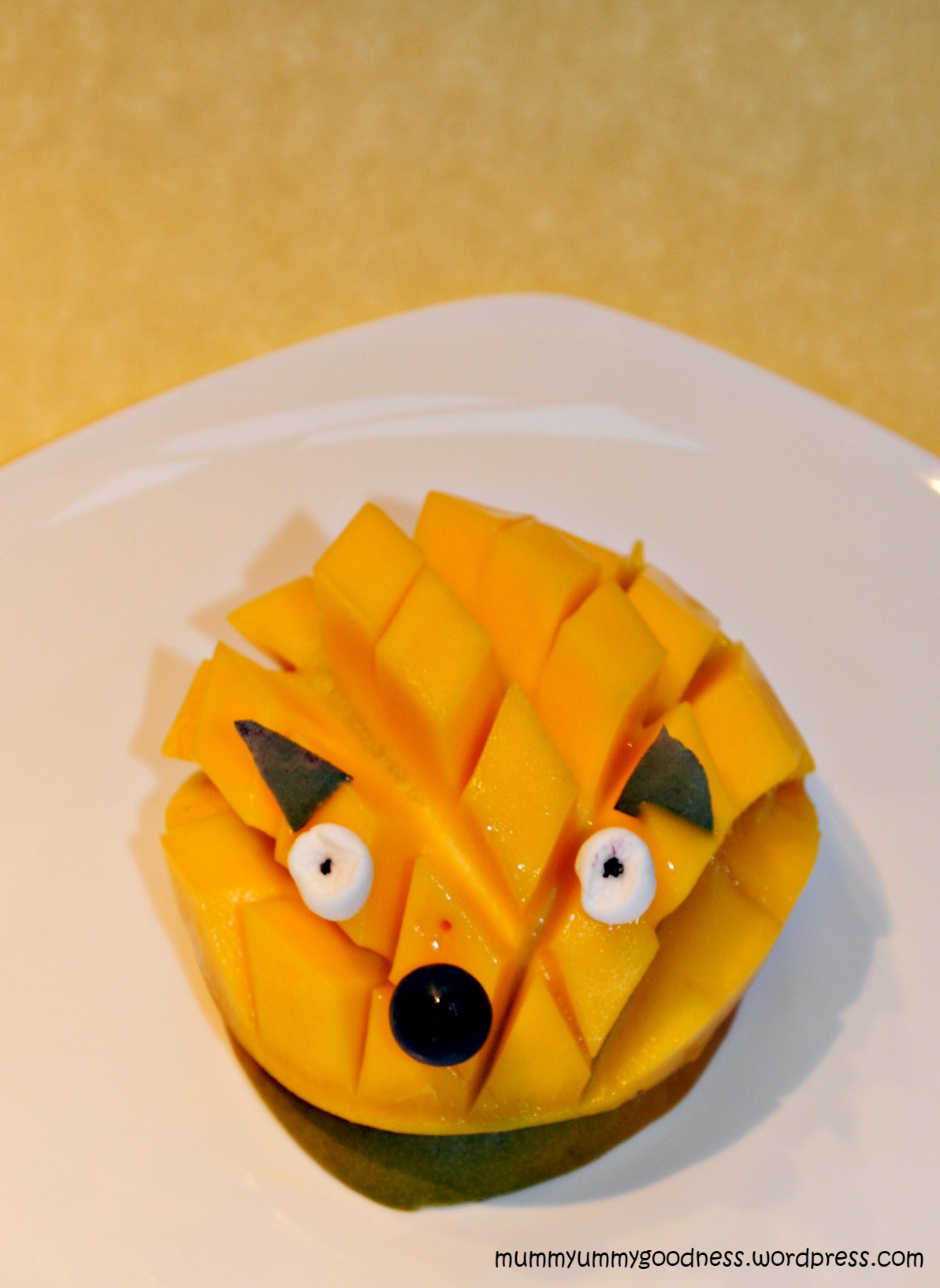 Cut a mango on either side of the central stone and discard the stone leaving you with two halves.  Cut through the flesh (but not the skin) of each half vertically and then horizontally.  Then invert each mango half into a hedgehog so you can easily cut out the cubed flesh.  Blend with a hand-held blender.  If needed, you can use a pestle to grind any remaining lumps.
