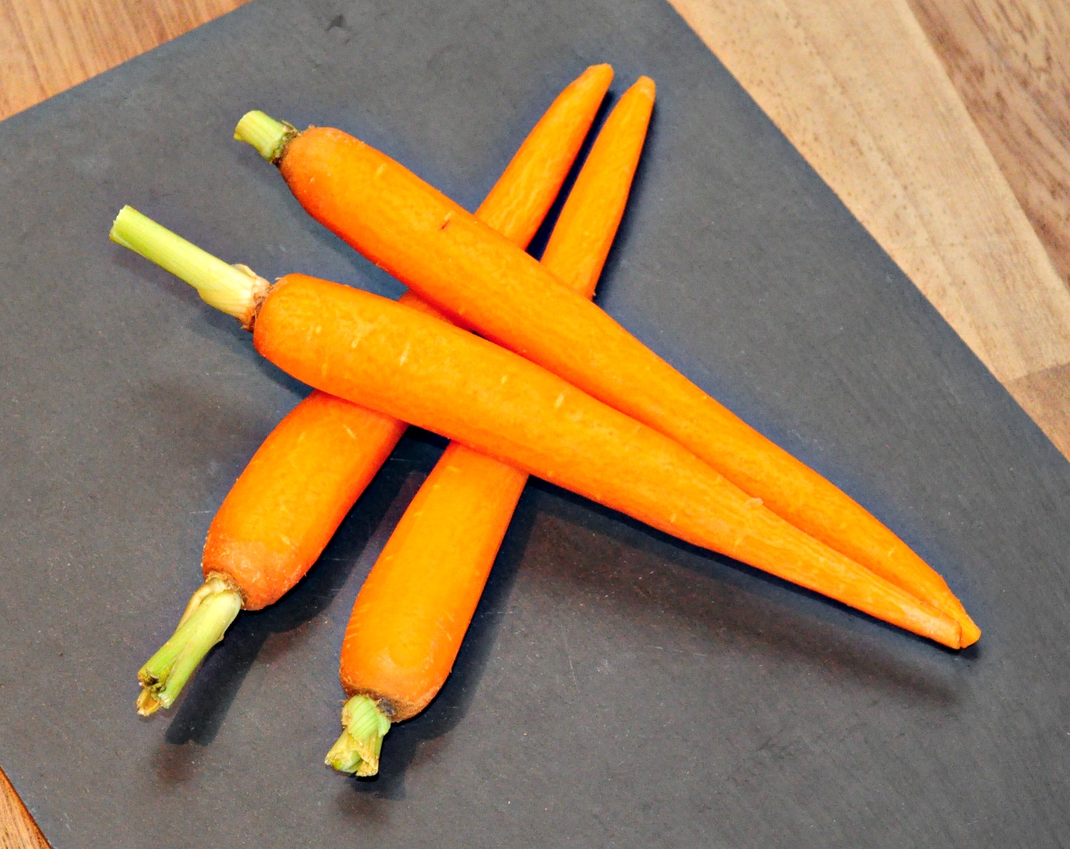 Heat 1/2 tbsp of olive oil in a saucepan and saute the onion for 2-3 minutes until soft, but not browning. Steam the carrots in a microwaveable steamer for about 6 minutes or until soft. Add the onion to the carrots and blend to the desired consistency using a hand-held blender. Add some of your baby’s normal milk to make a really smooth purée.