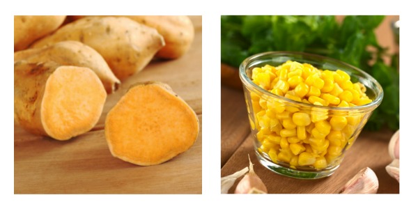 200g frozen sweetcorn; 300g sweet potato, peeled and chopped.