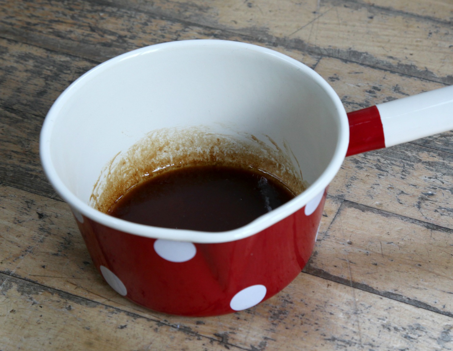 For the sauce melt the honey in a small saucepan over a very gentle heat. Add the balsamic and unsalted butter and cook for another 1-2 minutes, stirring regularly.