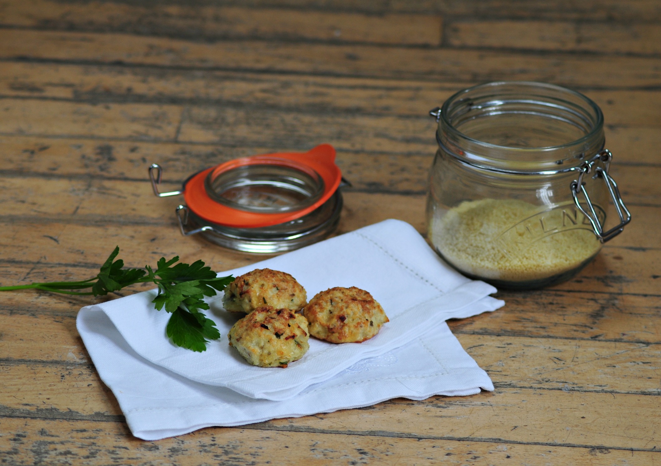 I’ve also been meaning to create a healthy little snack with couscous for a while.  I thought a cheesy couscous ball would pass the Lentil taste test.  But my couscous balls have become mini muffins as despite going into the oven as perfect almost equally sized spheres they came out anything but perfectly rounded!