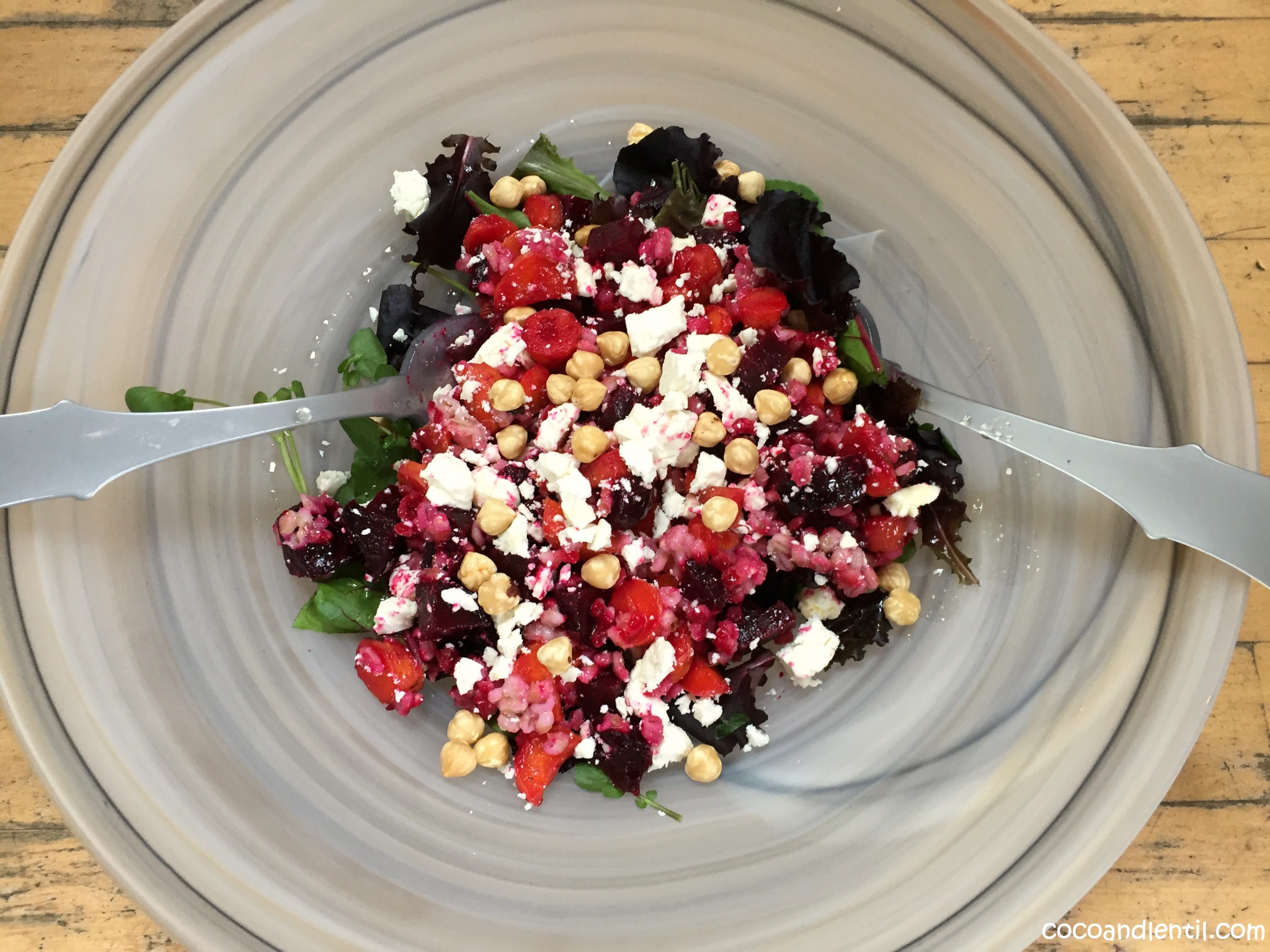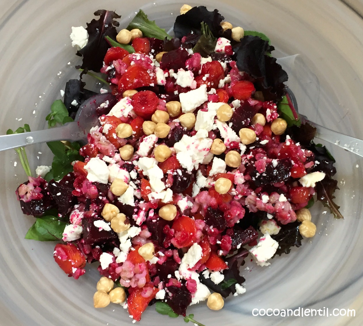 If you’ve seen my Beet, Carrot and Barley Salad you’ll know that thanks Grigson’s Vegetable Book, my bible for all things vegetable, I now know how to prepare and cook beetroot!  This recipe brings together the heavenly combination of beetroot and goats cheese with risotto.